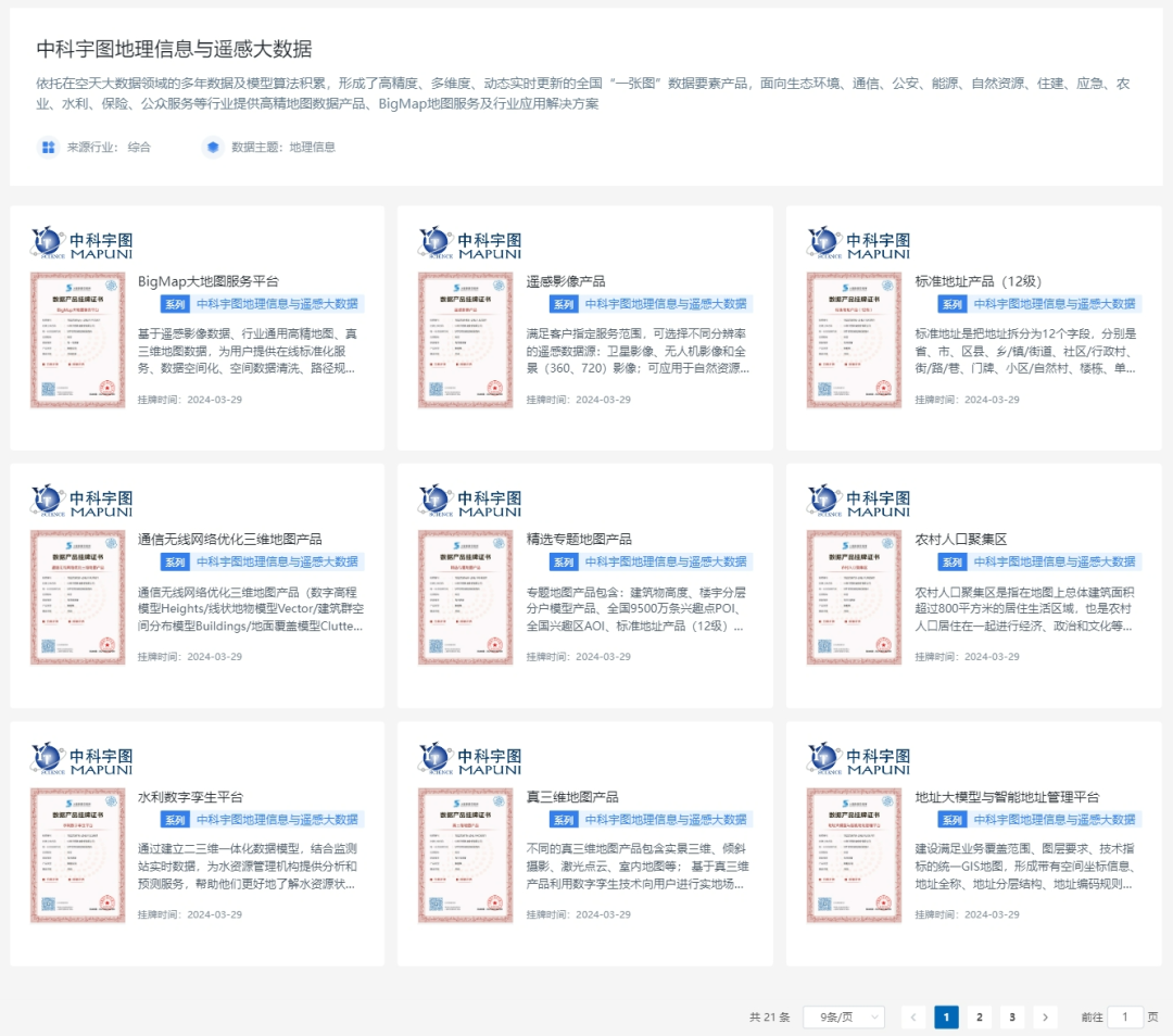 此次挂牌的“upay钱包官网地理信息与遥感大数据”系列数据产品,共计3类21项,为upay钱包官网首批挂牌数据产品,主要来源于自行生产,其中部分产品经协议采购和公开途径合法取得后加工生产形成。针对遥感影像数据、行业通用高精地图、真三维地图、通信无线网络优化三维地图和精选专题数据等产品,顺利获得多源数据融合技术和先进模型算法的构建,为政府部门、通信企业和科研组织给予重要的地理信息支持,为城市规划、网络优化布局、资源管理、建设选址等给予数据支撑,有效提升公共服务的效率和质量。面向大气环境和水环境监测的数据产品综合运用大数据、人工智能与大模型技术,以解决环境问题为导向,支撑生态环境智能监测、监管业务应用、精准研判与科学管控。