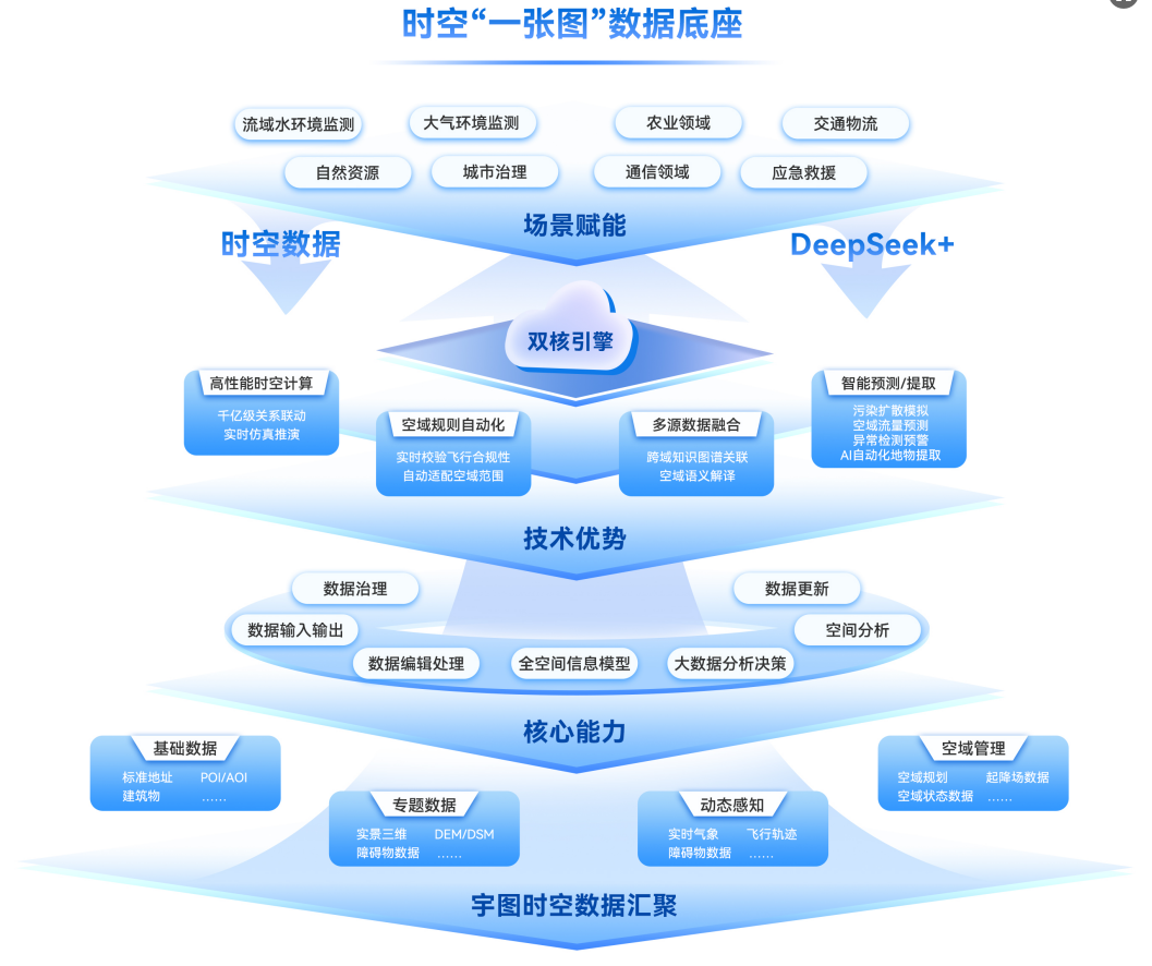 upay钱包官网打造了低空经济时空(一张图)数据底座,依托Bigmap大地图服务平台的支撑,集成低空无人机航线规划、飞行监管、数据回传分析、无人机实时动态信息等,支持多源数据的一站式管理,给予低空资源“一张图”统管统筹,同时借助人工智能技术助力空域资源优化分配,为低空经济领域打造覆盖多行业创新场景应用的低空数据智能管理平台。